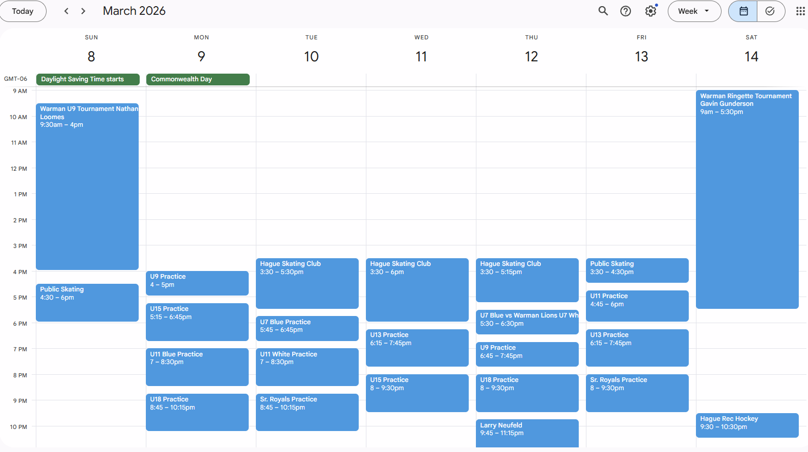 Arena Schedule