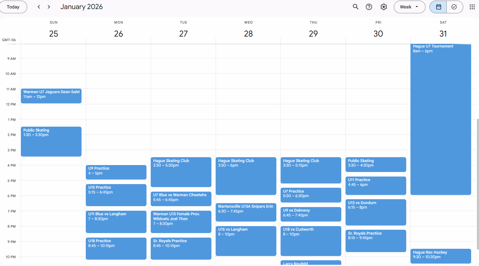 Arena Schedule