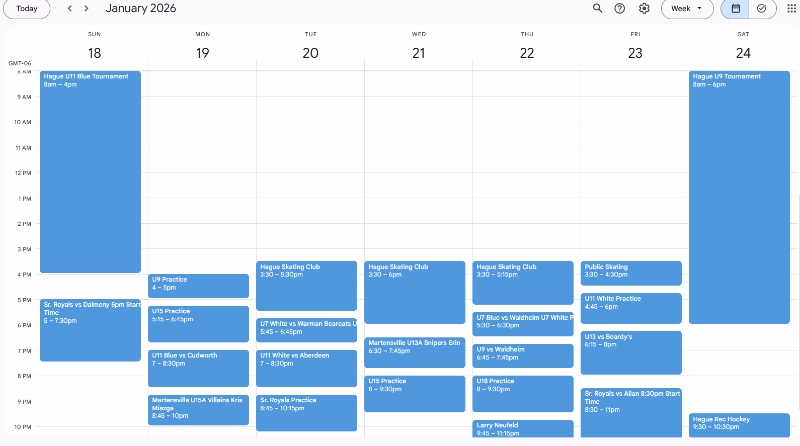 Arena Schedule