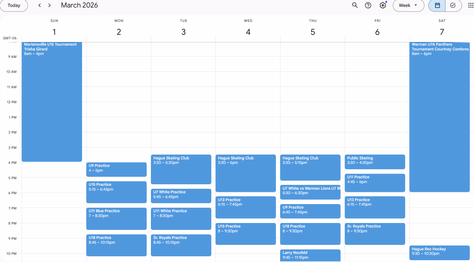 Arena Schedule