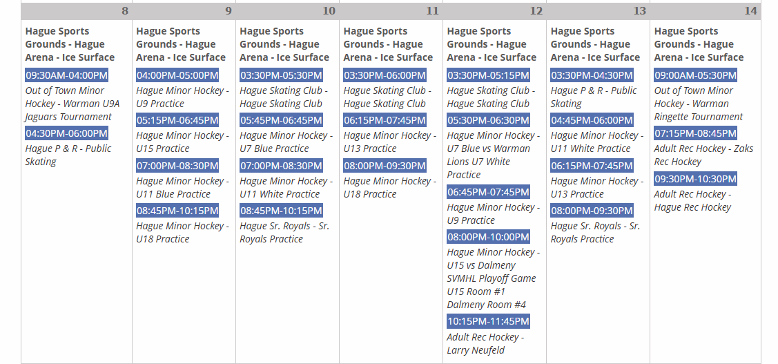Arena Schedule