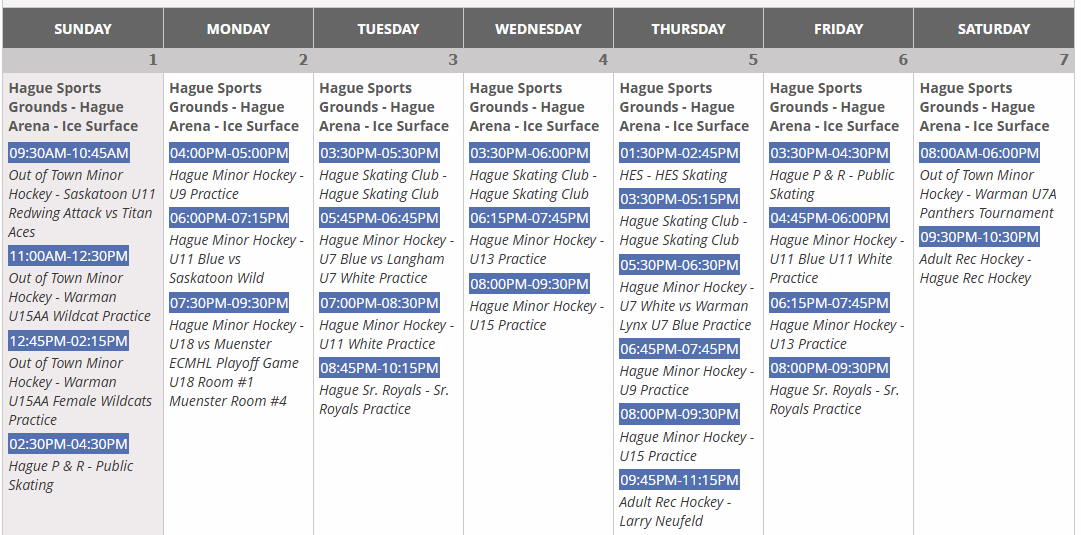 Arena Schedule