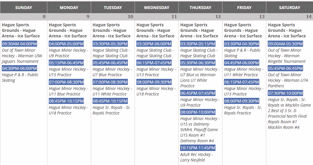 Arena Schedule