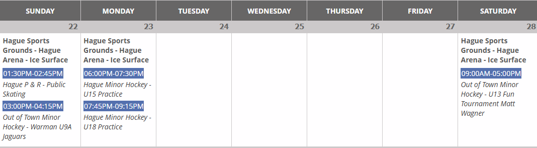 Arena Schedule