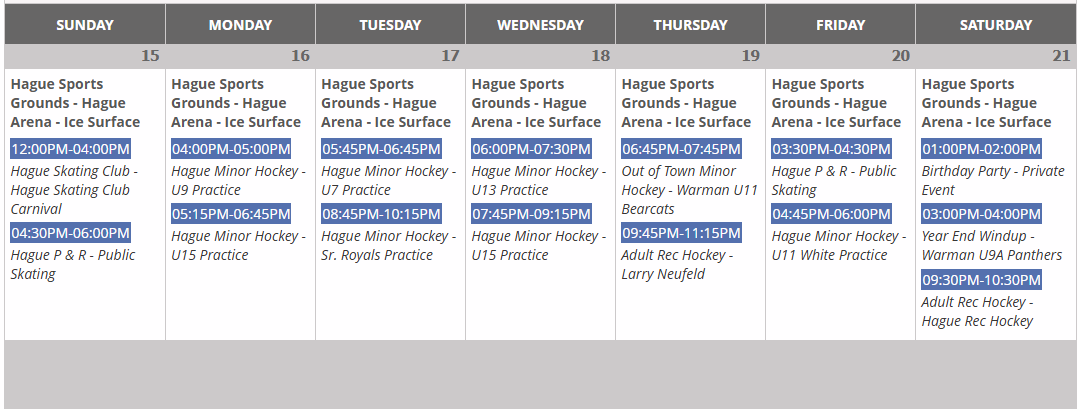 Arena Schedule