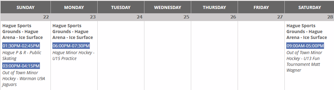 Arena Schedule
