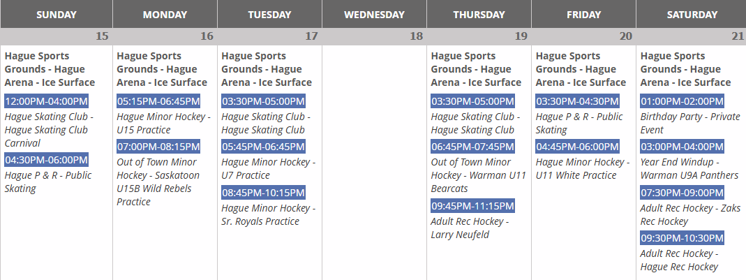 Arena Schedule