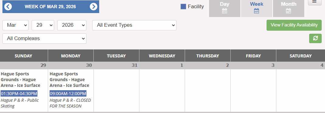 Arena Schedule