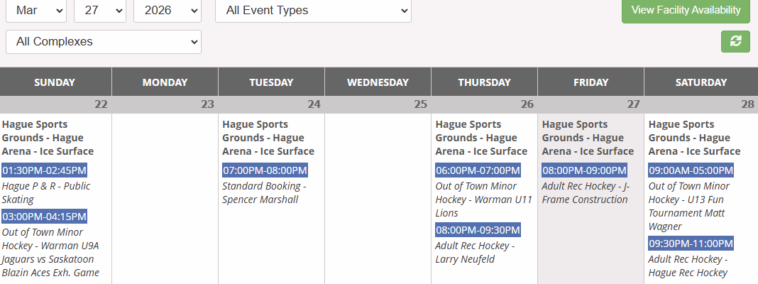 Arena Schedule